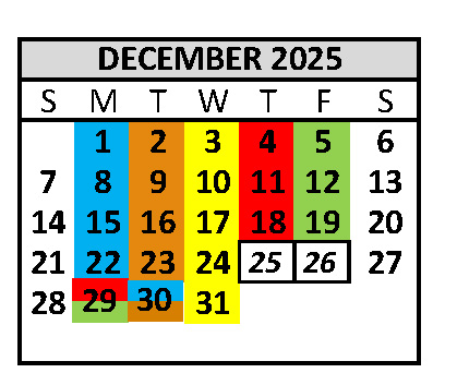 Please see the image below or download the December 2025 calendar here.