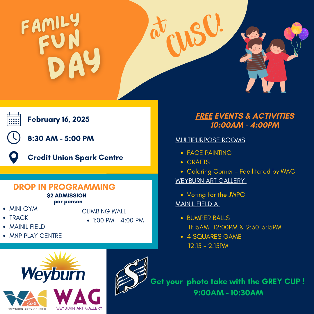 Bring the family, grab your photo with the Grey Cup and make the Family Day one to remember at the Spark Centre!