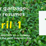 Weekly garbage collection will resume starting April 1st. Please ensure your cart is on the street before 7:00am on your collection day. If your garbage pickup day falls on a […]